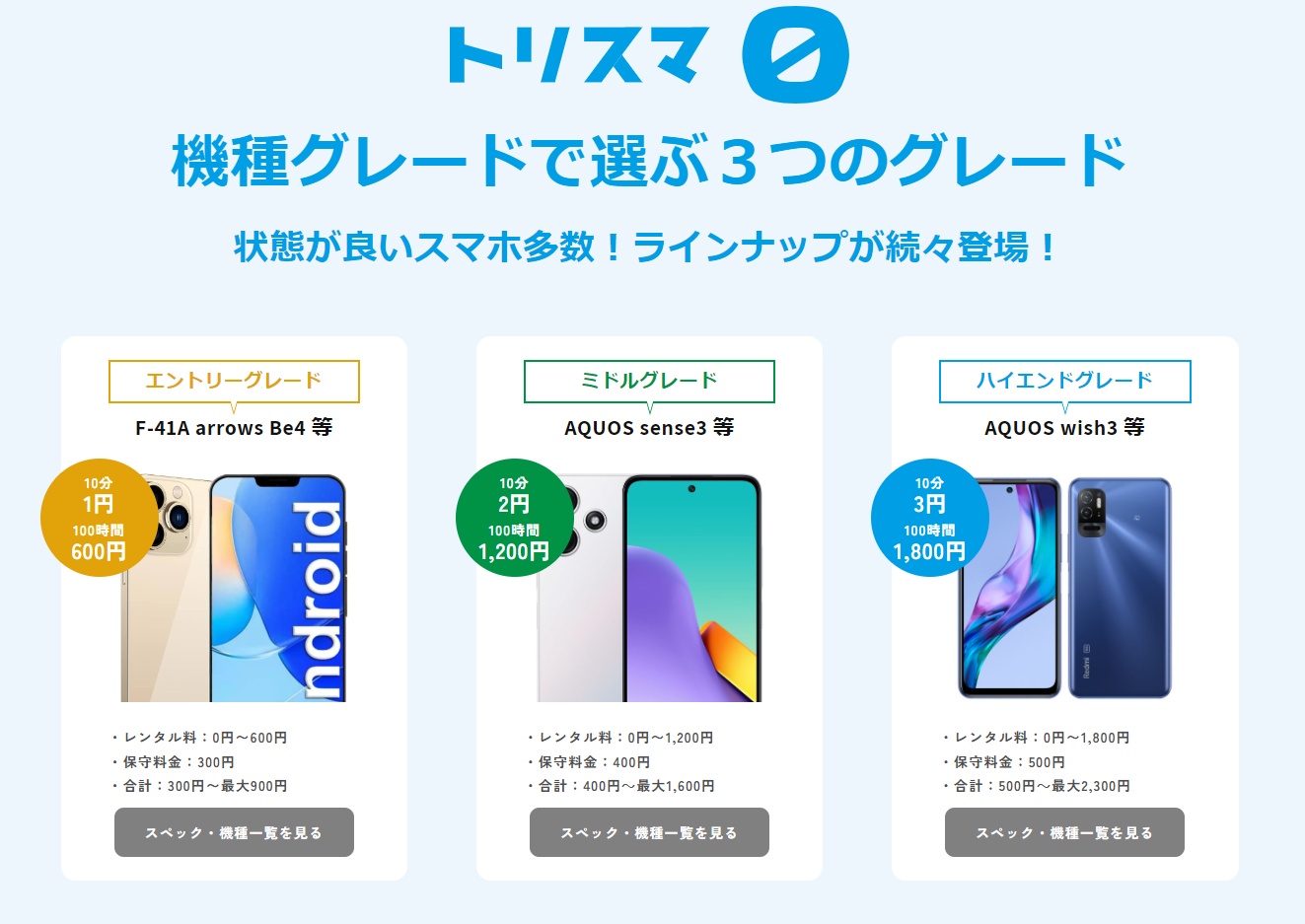 「トリスマ0」サービス開始、1円/10分~のスマホレンタルサービス(2/5)