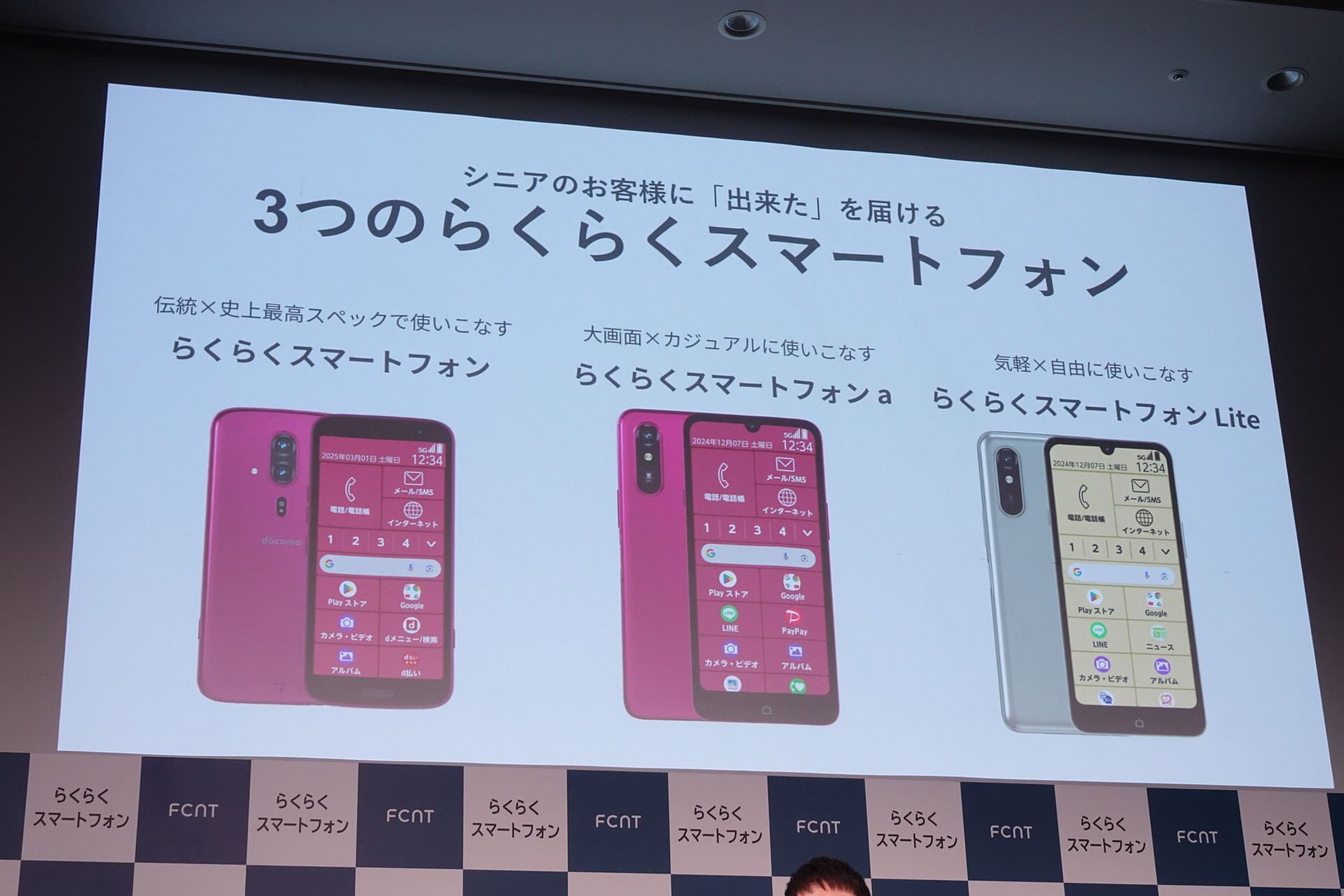 • FCNTが「らくらくスマホ」最新機種発表、ドコモ・ワイモバイル・SIMフリーで