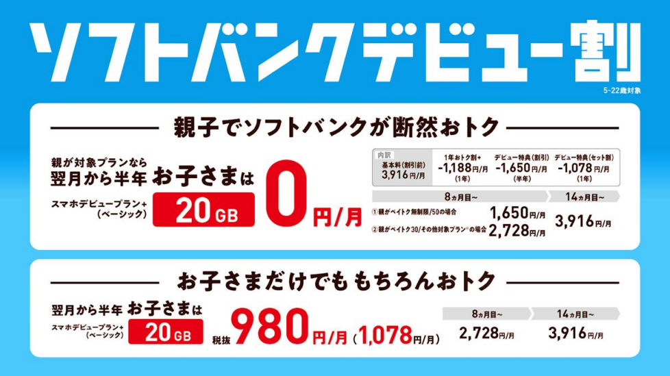 ソフトバンクから新料金プラン「スマホデビュープラン+」登場、4GBと20GB