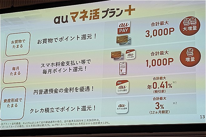 「auマネ活プラン+」、金融特典そのままに決済関連特典を拡充させて新登場