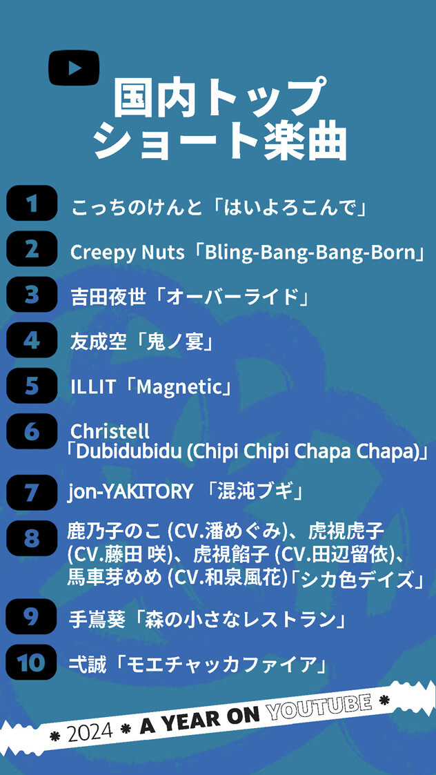 YouTube、「2024年日本のYouTube年間ランキング」を発表(4/5)