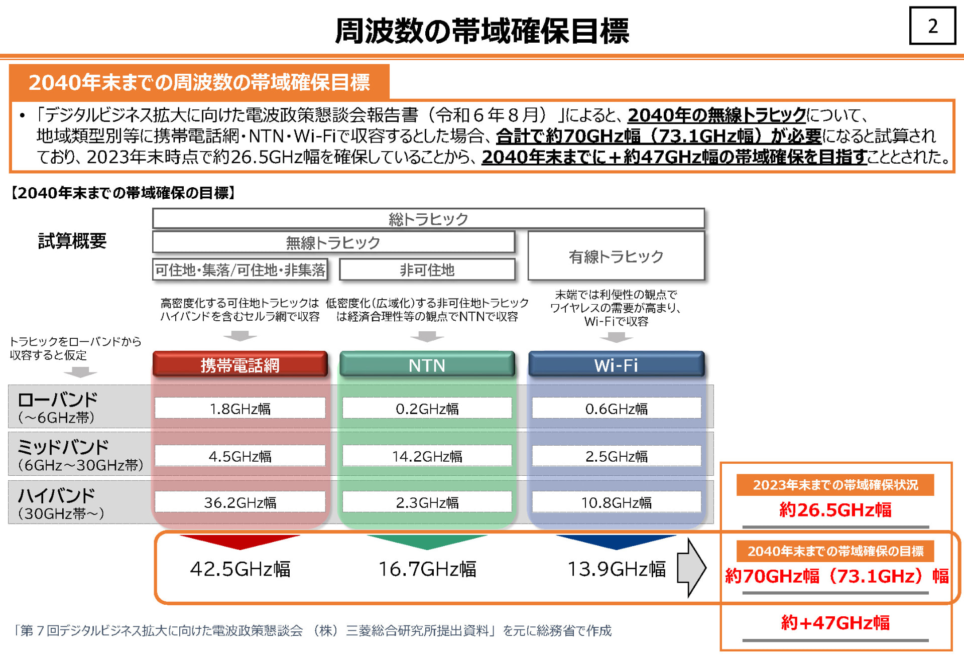 • 最新の「周波数再編アクションプラン」案、スマホと衛星の通信システムなど