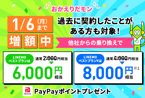 「LINEMOベストプランV」に他社からの乗り換えでPayPayポイント2万円分プレゼント