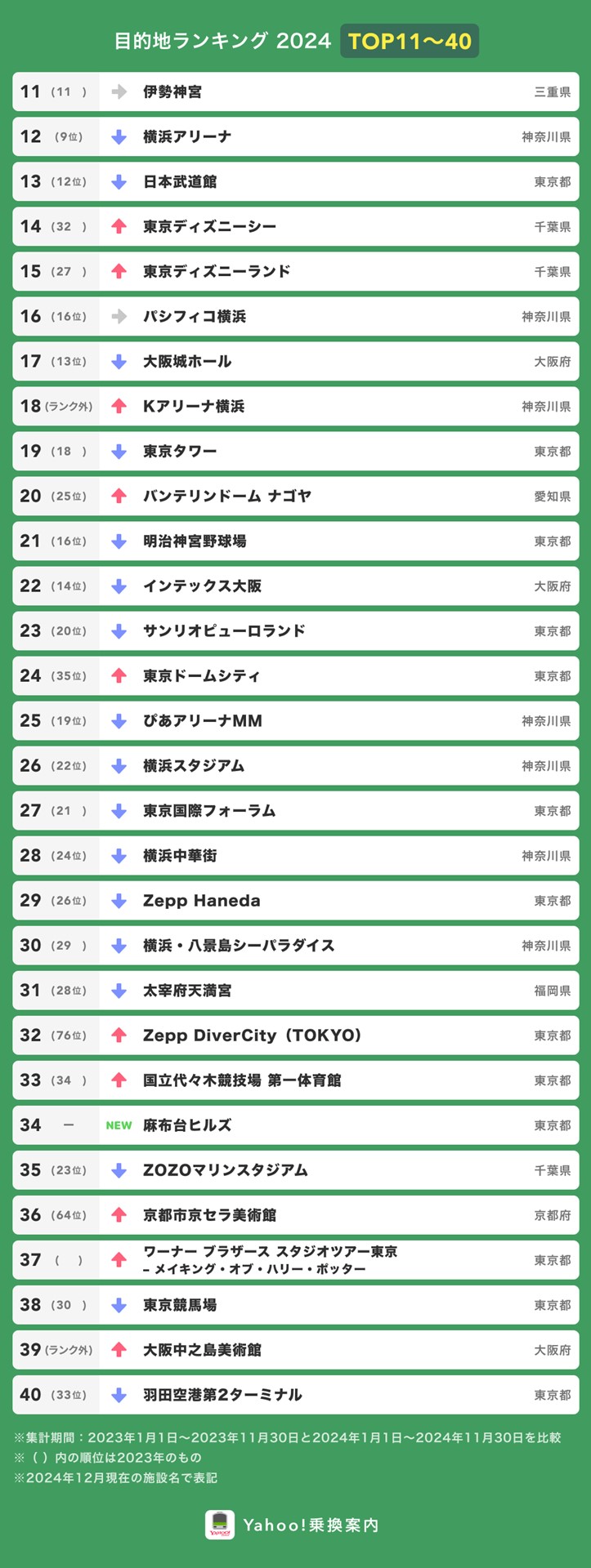 ヤフー、「Yahoo!乗換案内」で検索された「目的地ランキング 2024」を発表(3/8)