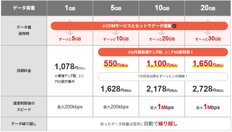 JCOM MOBILEの月間5GB/550円~の「最強ヤング割」、TVや固定回線でも割引