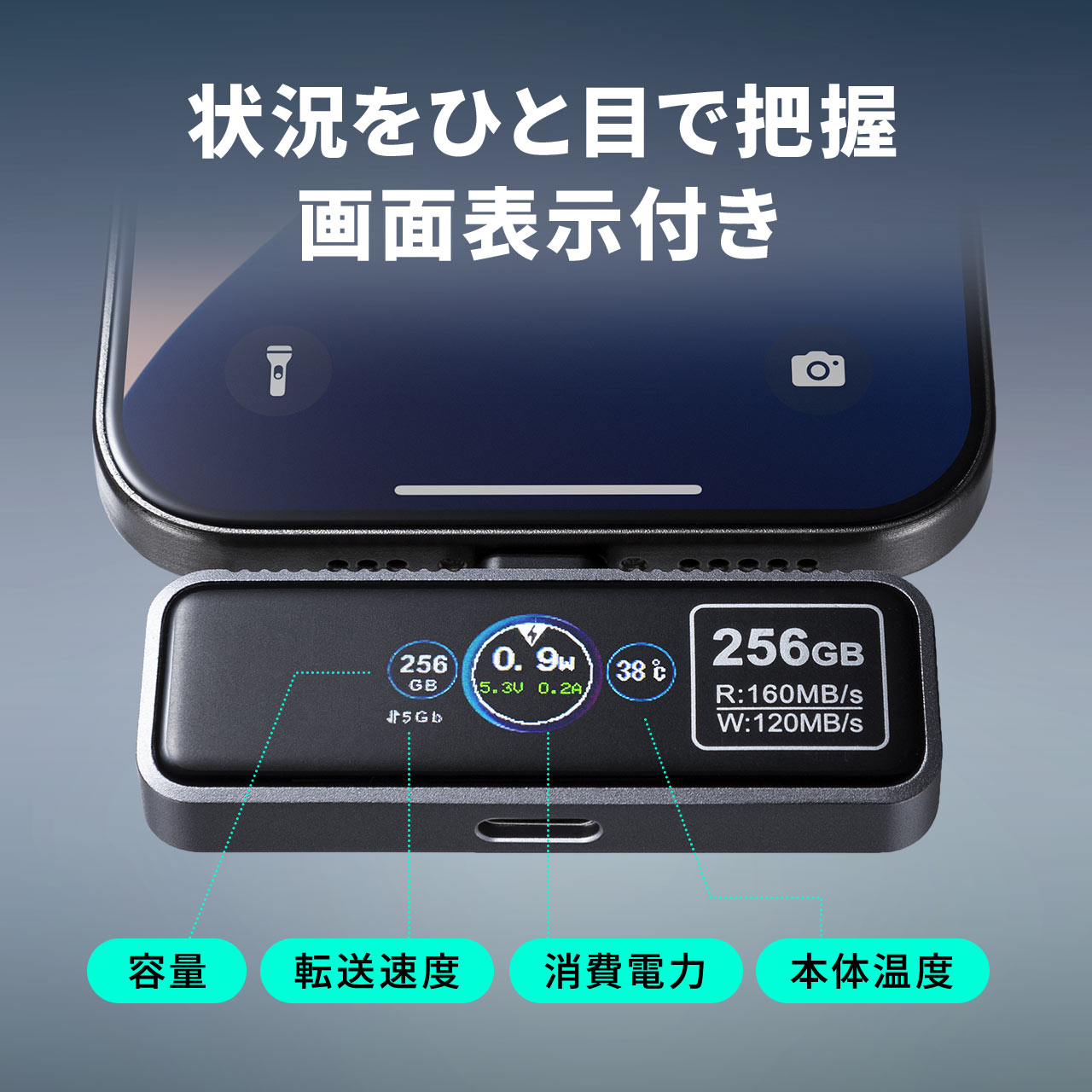 残り容量や転送速度を画面表示、スマホのストレージになるUSBメモリが登場 サンワサプライ(3/21)