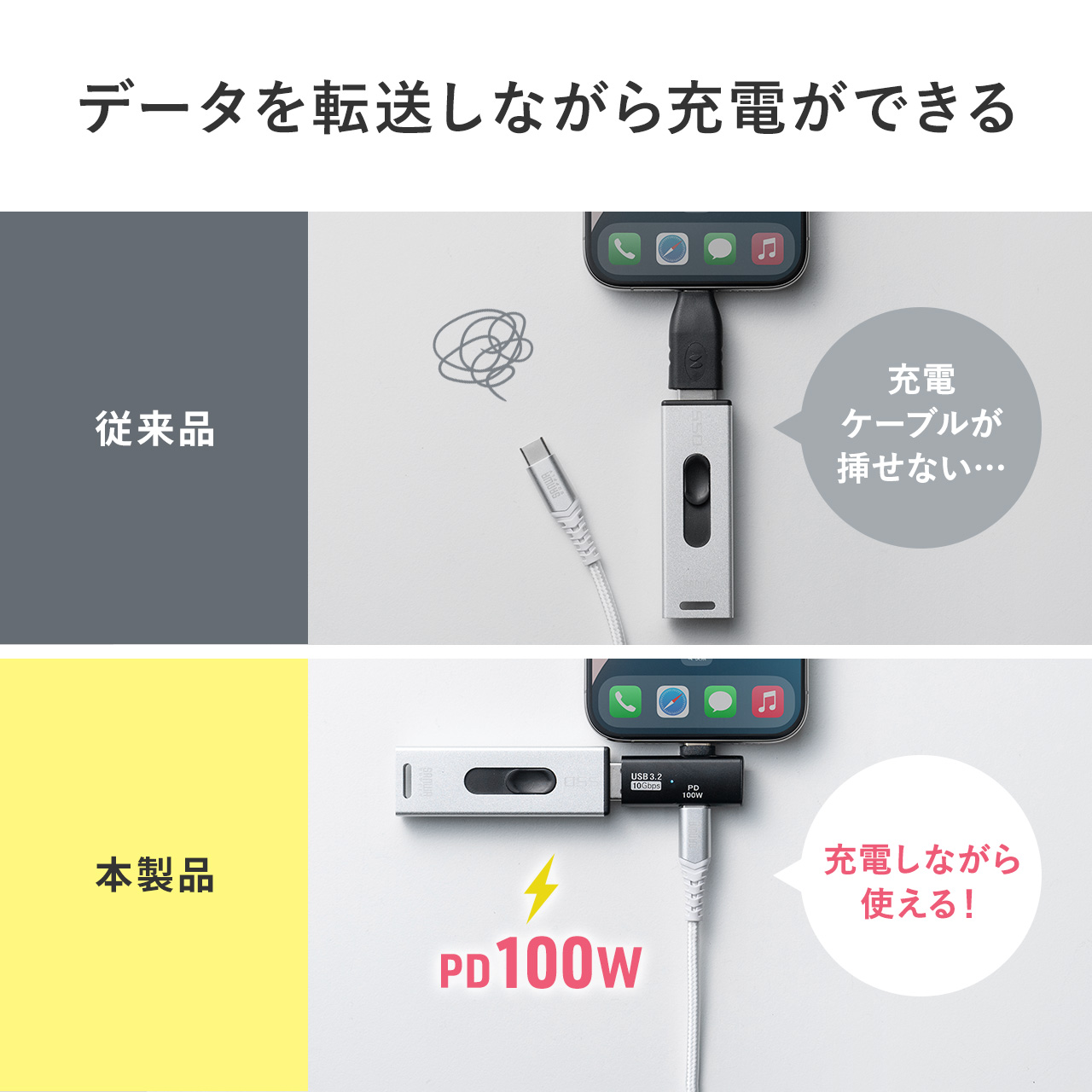 スマホでUSBメモリと充電を同時にできるL字型アダプタ、サンワサプライ(3/10)