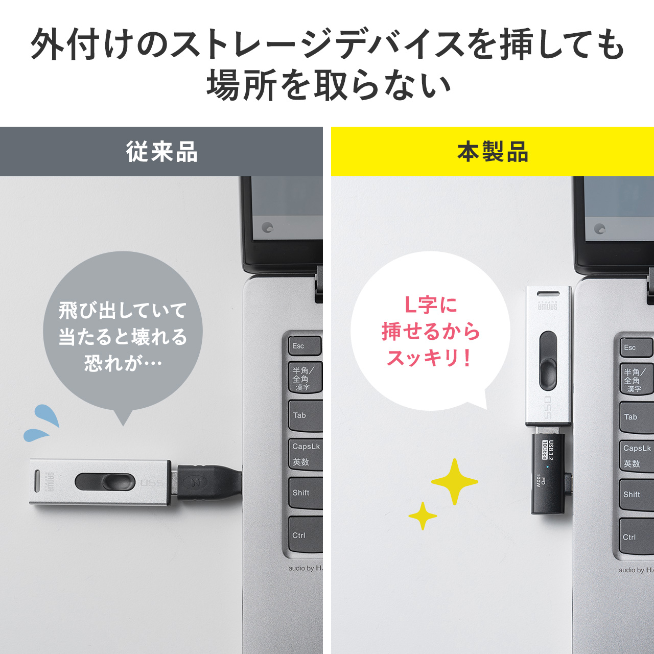 スマホでUSBメモリと充電を同時にできるL字型アダプタ、サンワサプライ(4/10)