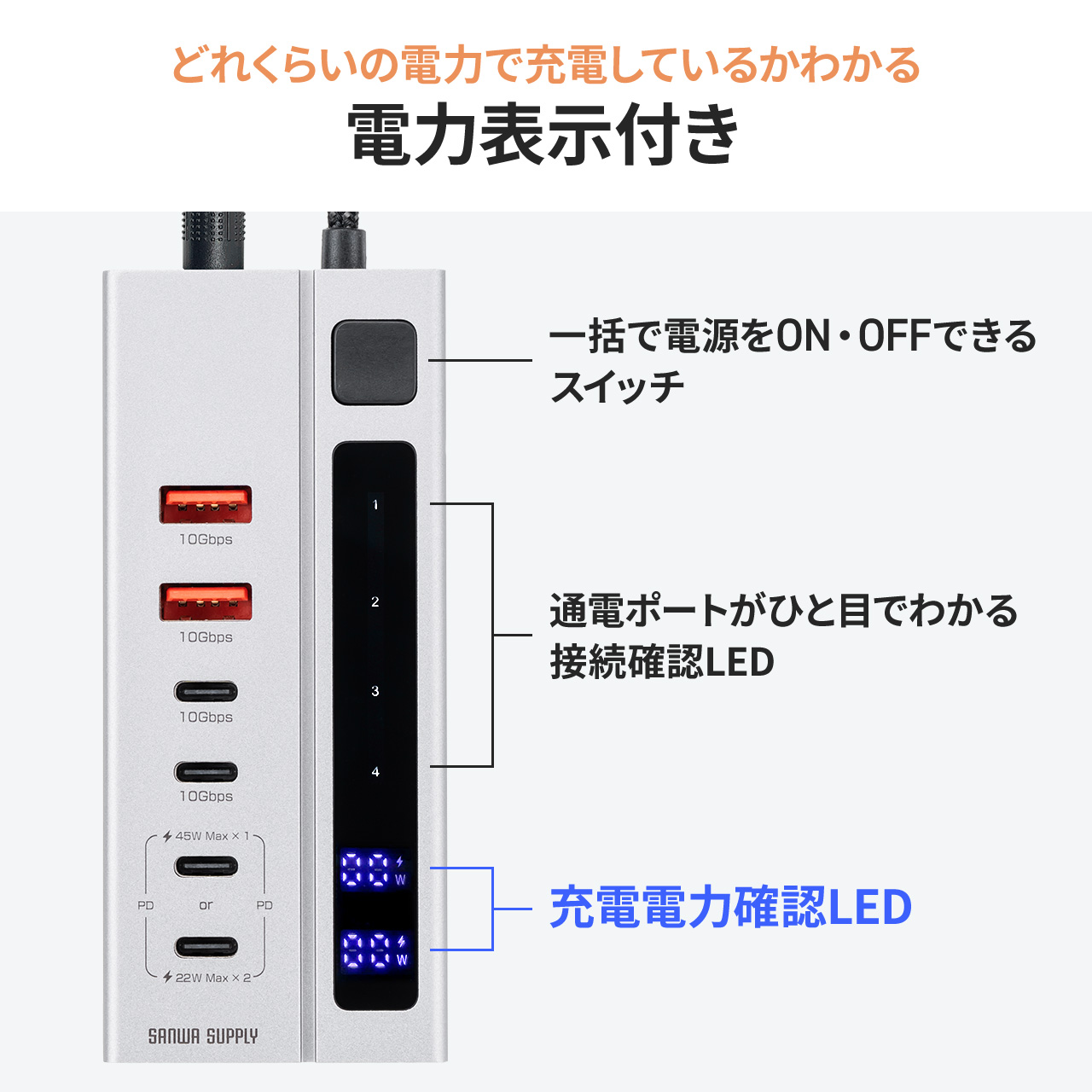 サンワサプライから、最大45WのPD充電可能なUSBハブ発売(5/6)