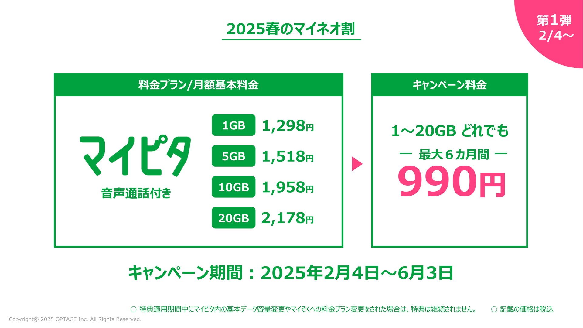 • mineoの「マイピタ」が最大6カ月間990円など「2025春のマイネオ割」 4日~