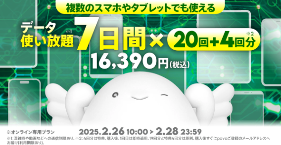 povo、ローソンでギガがもらえる「povo Data Oasis」11月19日スタート