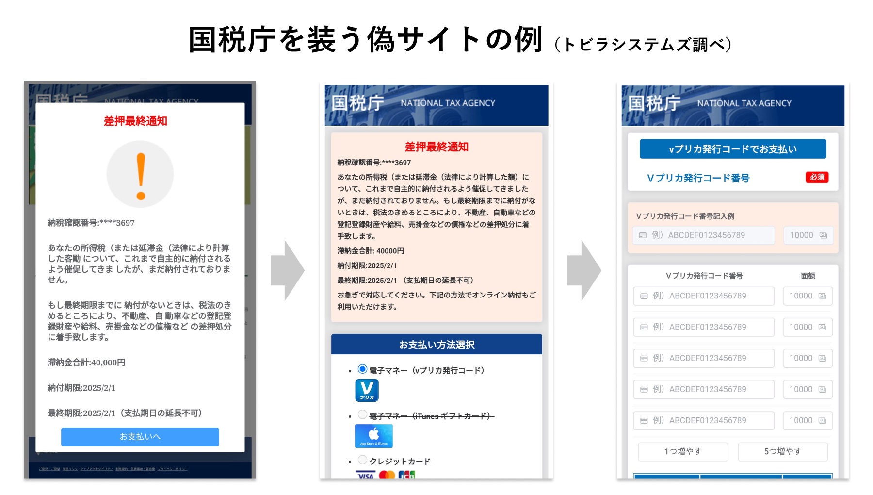 「国税庁からの重要なお知らせ」でフィッシング、トビラシステムズの調査レポート