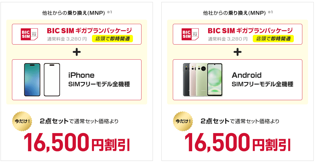 「BIC SIM」へのMNPで最大1.5万ポイントとスマホ割引
