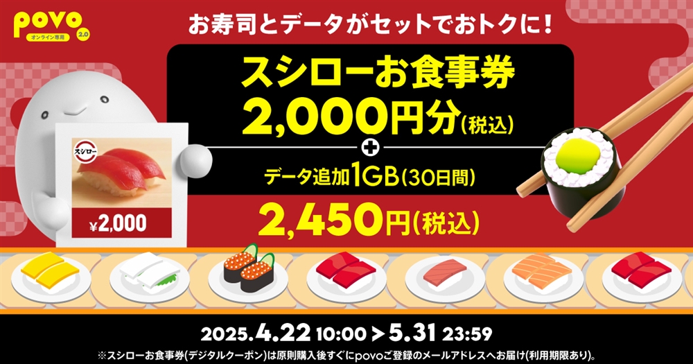 povo、ゴールデンウィークキャンペーンを開催 1年間トッピング割引や「データ使い放題(7日間)」など