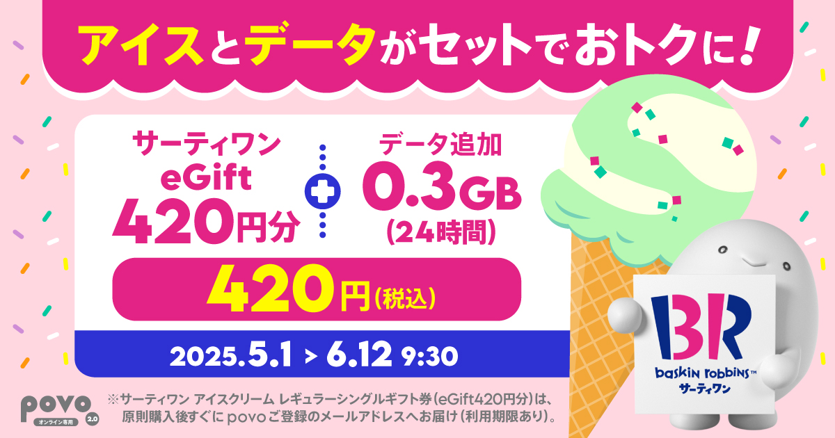 povo、期間限定トッピング「999GB(365日間)」「60GB(365日間)」を提供