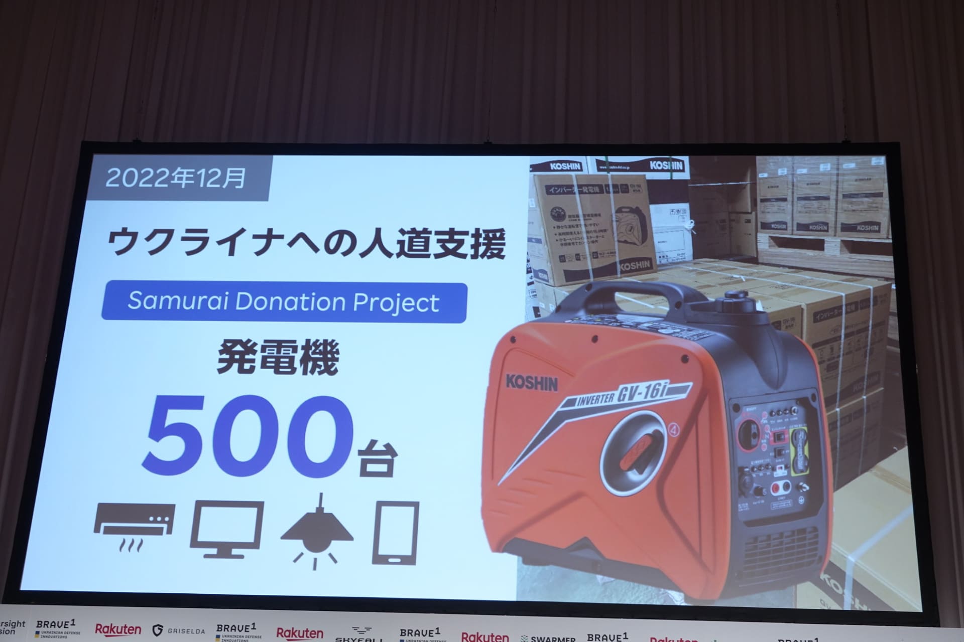 • 楽天三木谷氏がウクライナへ発電機500台を寄贈