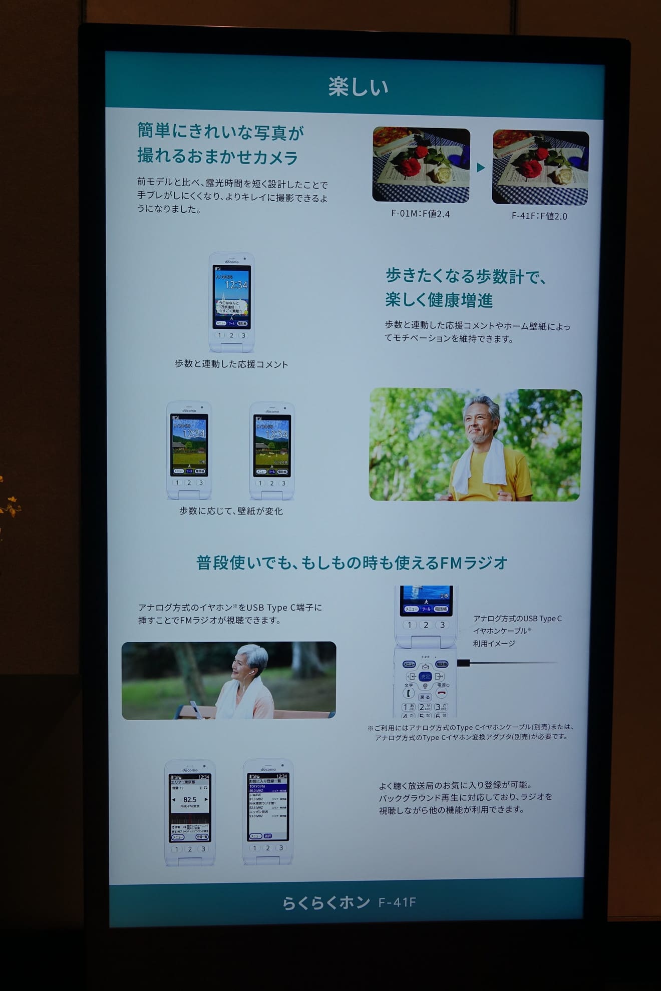 • ドコモから6年ぶりの「らくらくホン F-41F」、シニア向けの折りたたみケータイ