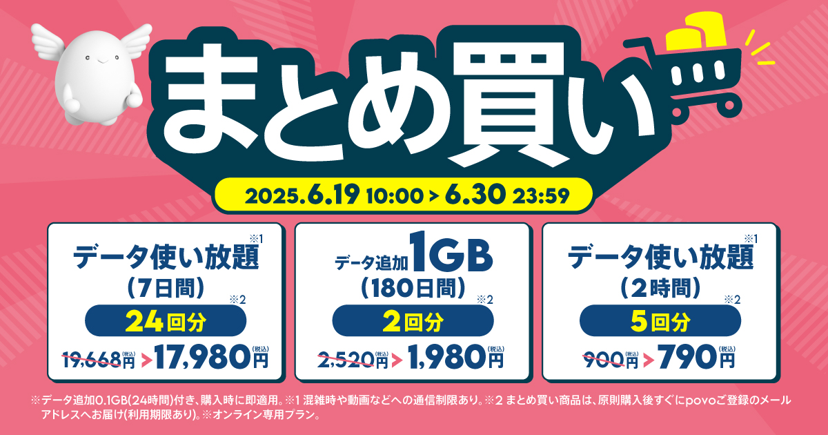 povoでデータ追加1GB+データ使い放題(24時間)10回分がセットのトッピングを発売