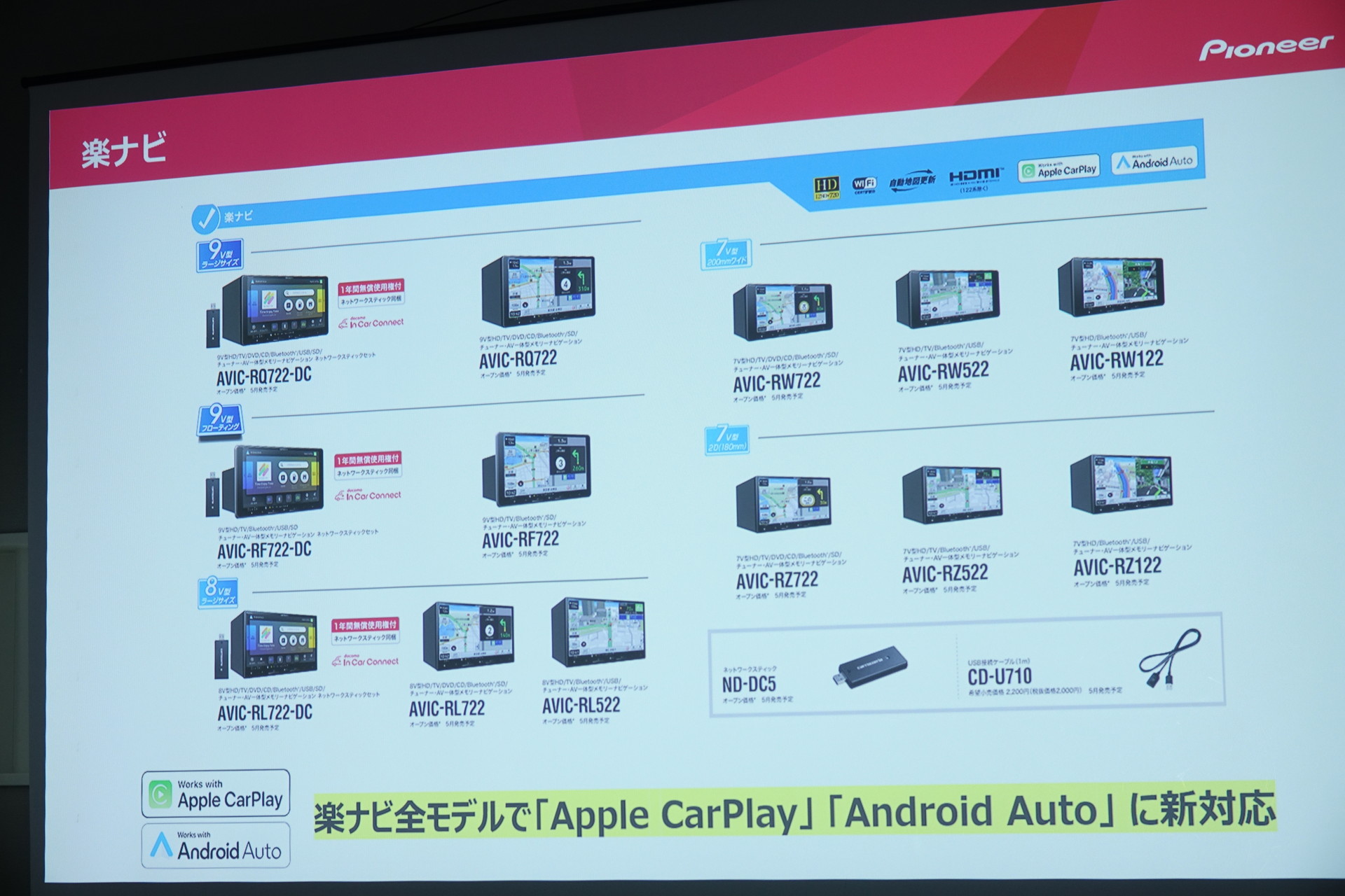 パイオニア、カロッツェリア「楽ナビ」13機種 オンライン機能やApple CarPlay/Android Autoにも対応