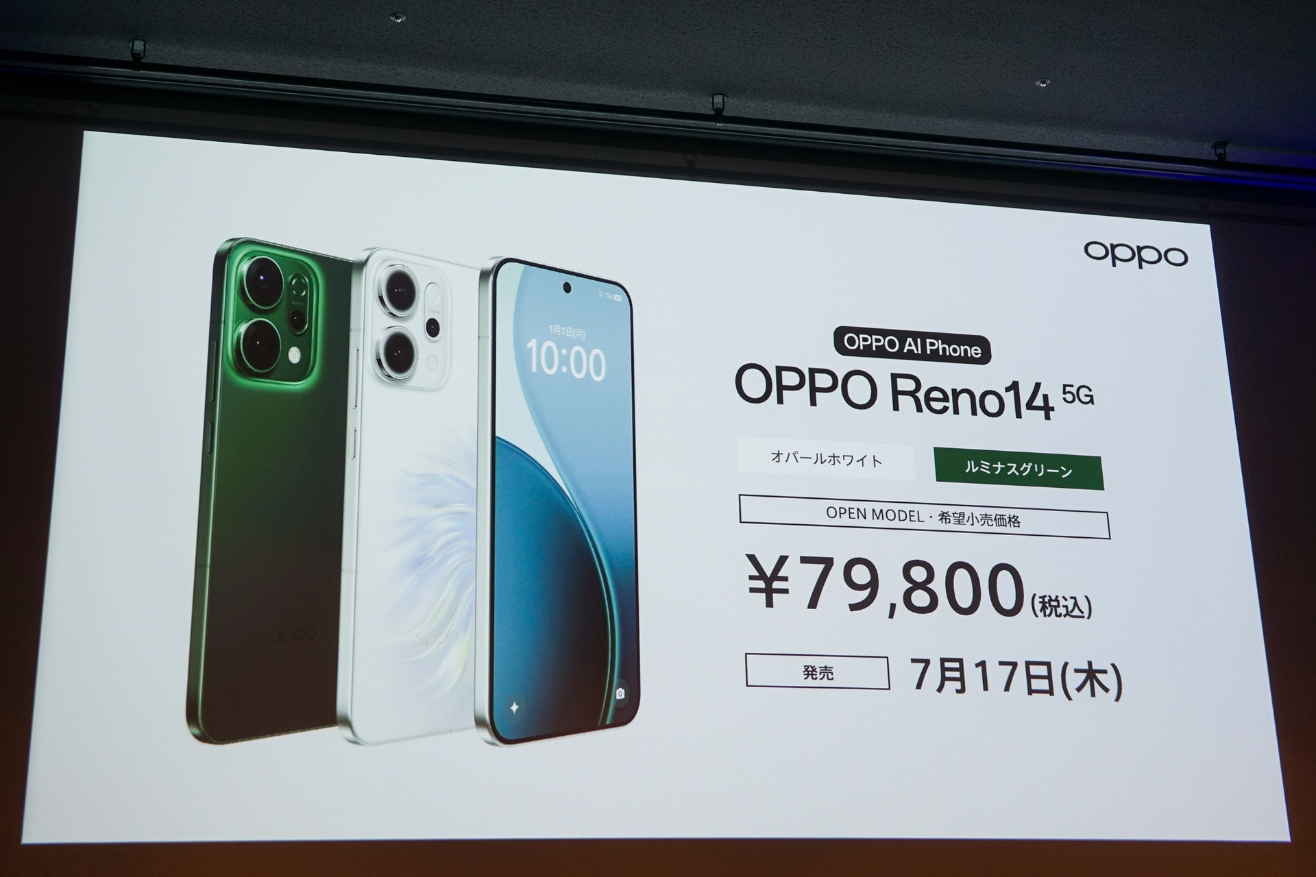 • OPPOのミドルレンジ最新スマホ「OPPO Reno14 5G」発表、AI・カメラ・大容量バッテリー