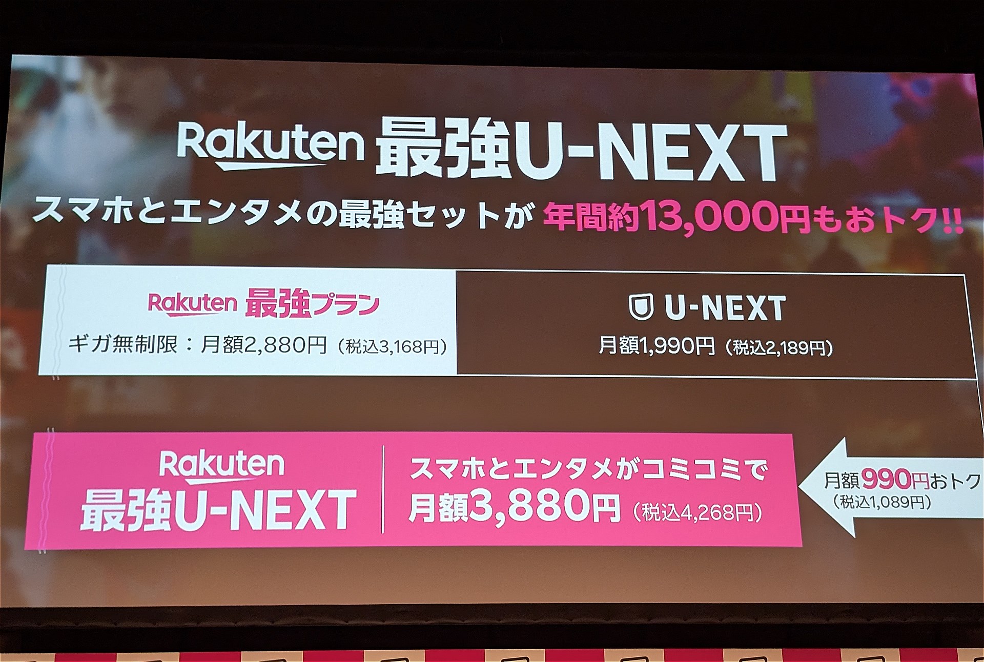 • 楽天モバイルが新料金プラン「Rakuten最強U-NEXT」発表、月額4378円