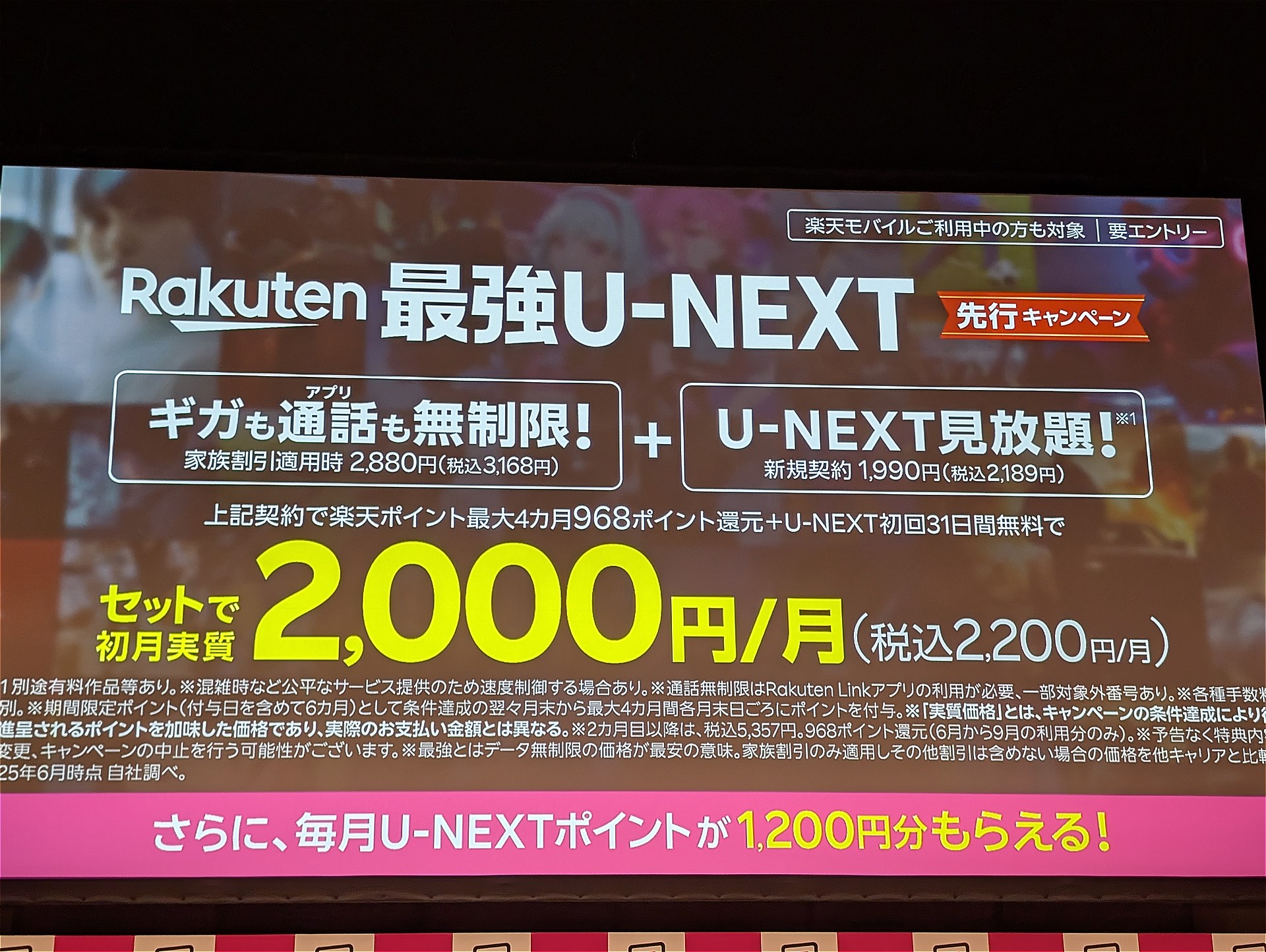 • 楽天モバイルが新料金プラン「Rakuten最強U-NEXT」発表、月額4378円