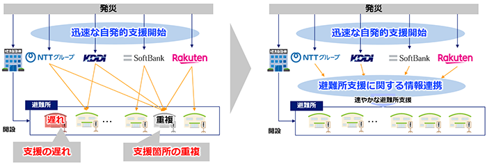 避難所支援の“重複”解消へ、NTT・KDDI・SB・楽天が力をあわせる狙いとは