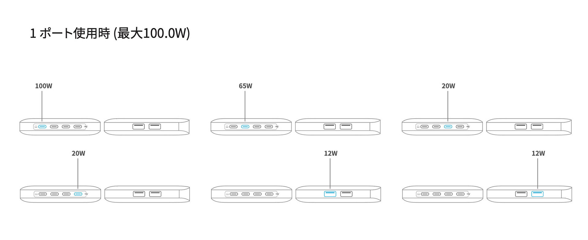 • Anker Nano Charger(130W、6Ports)ホワイト