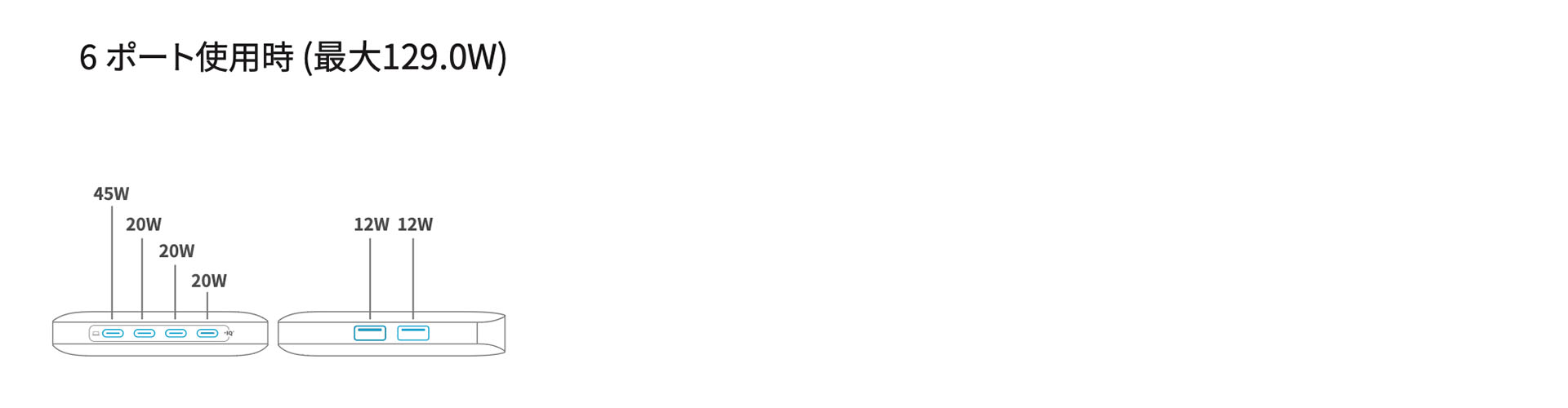 • Anker Nano Charger(130W、6Ports)ホワイト