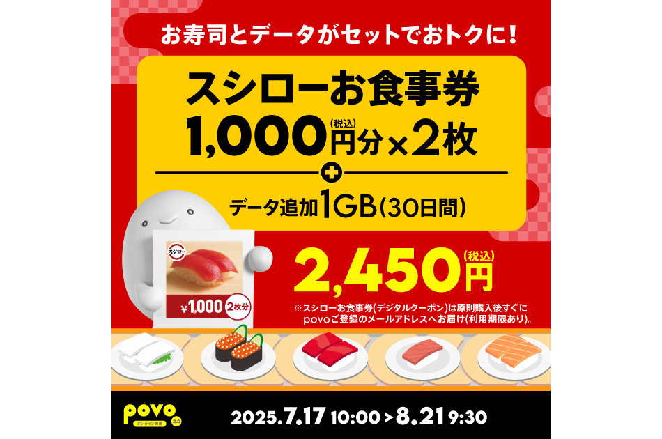 povoから「ムビチケ3000円分」+「 1GB」限定トッピング、8月末まで