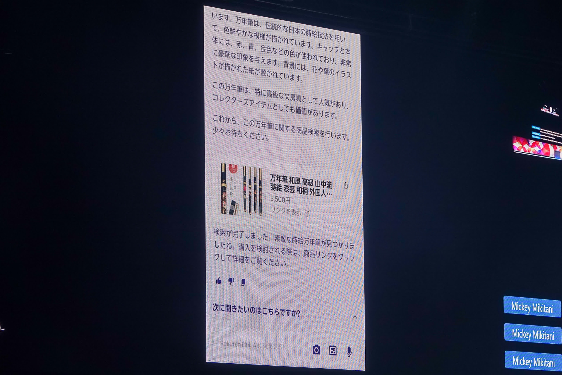 楽天モバイル、AIチャットサービス「Rakuten Link AI」発表