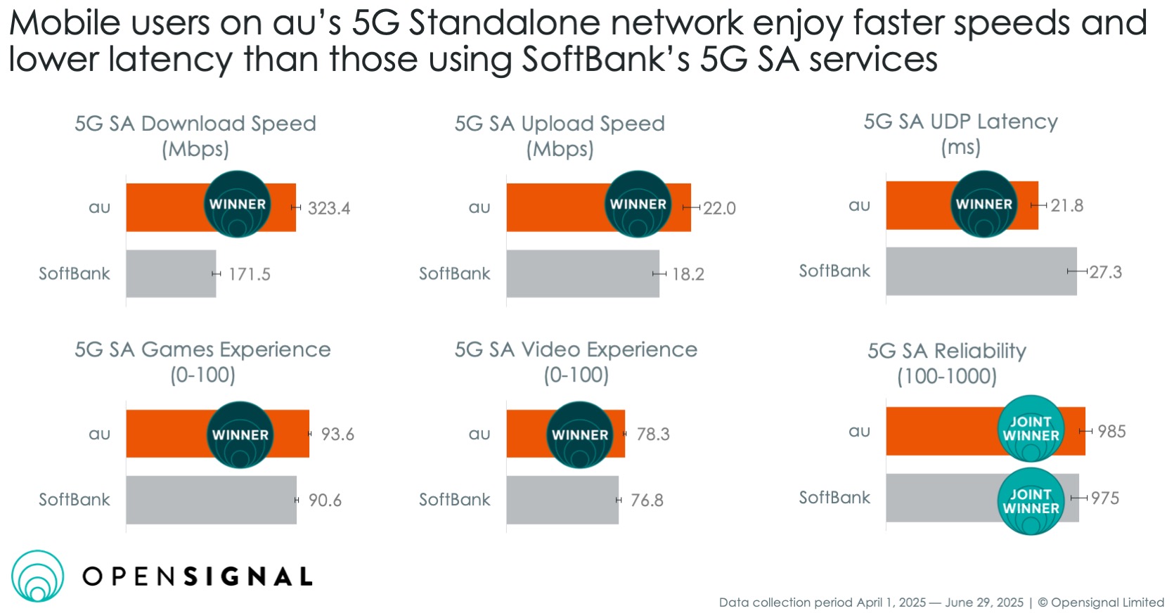 Opensignal、5Gグローバルアワード2025発表 auが3指標でWinner受賞
