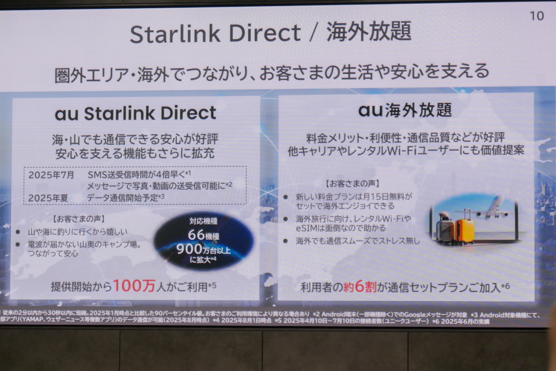 「au Starlink Direct」がさらに繋がりやすく、SMS送受信は30秒以内に