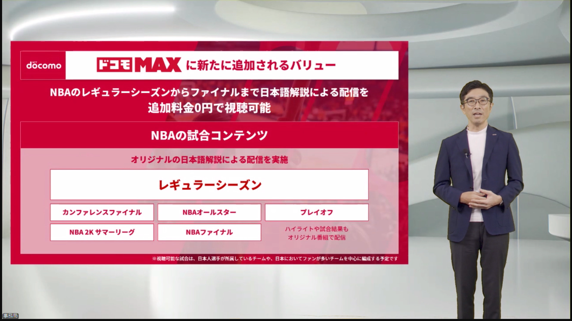 • 料金プラン「ドコモ MAX」で米NBAを視聴できるように