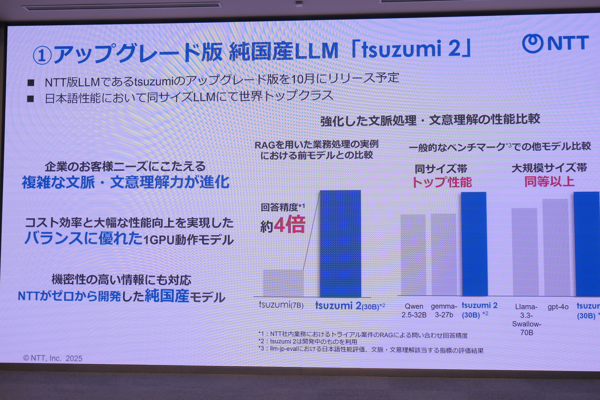 • NTTが大規模言語モデル「tsuzumi 2」を提供開始 世界トップクラスの日本語性能を実現