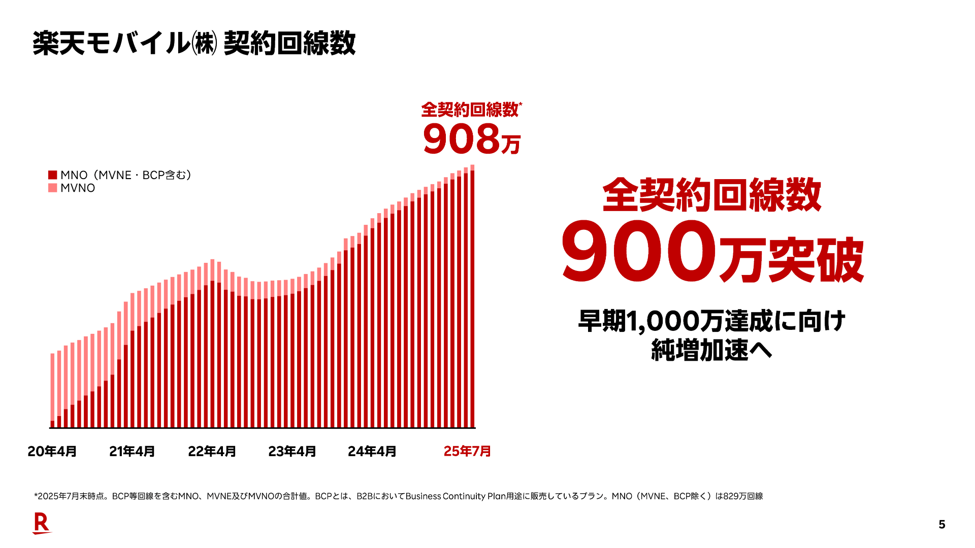 楽天モバイルの契約数、900万回線を突破