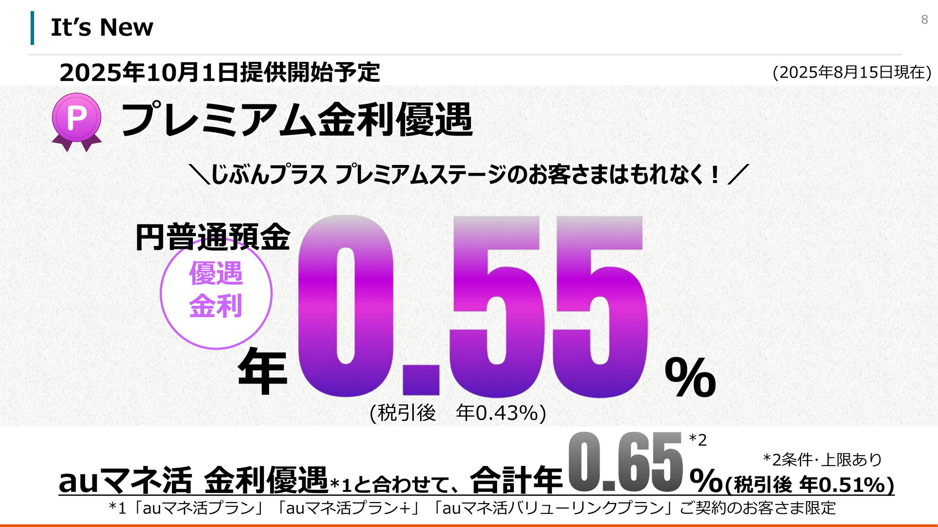 普通預金で年0.55%、auじぶん銀行が「プレミアム金利優遇」(2/9)