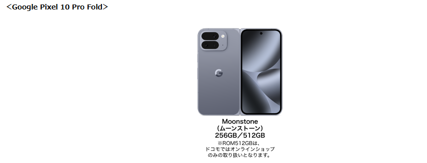 • ドコモ、「Pixel 10 Pro Fold」を10月9日発売