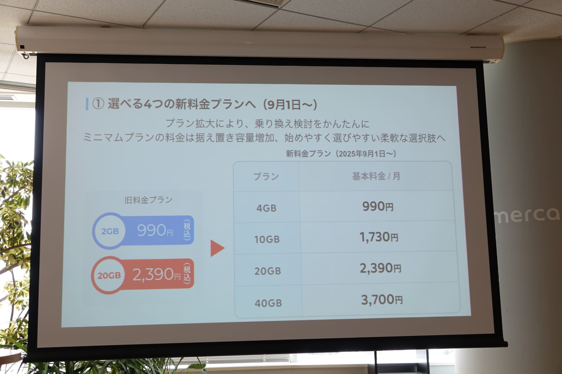 メルカリモバイル、4GB月額990円~の新料金プランを発表