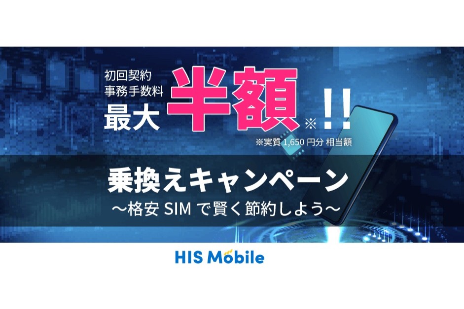 HISモバイル「MNPワンストップ」を導入、MNP転入で手数料半額キャッシュバックも
