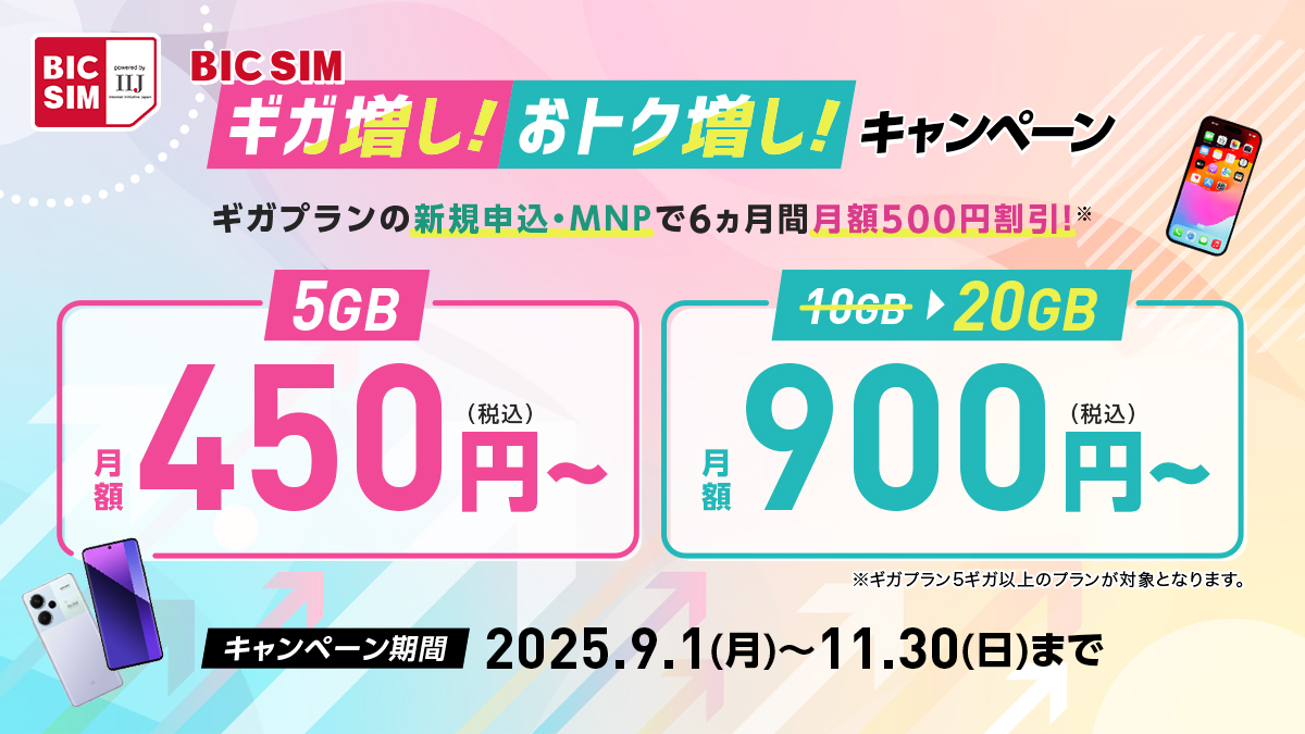 BICSIM、料金プラン割引やデータ倍増など9月のキャンペーン発表