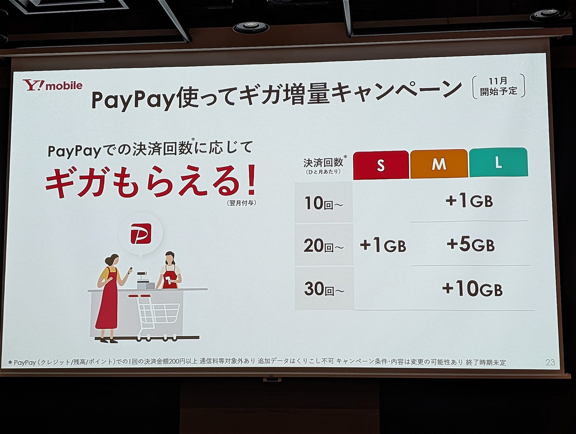 PayPay決済でワイモバイルのギガがもらえる、11月1日~