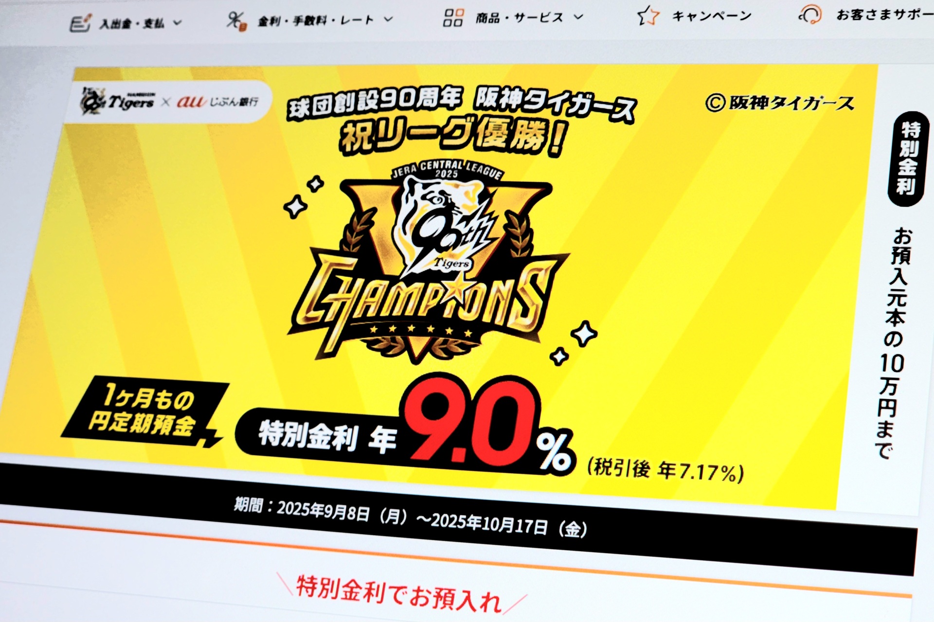 auじぶん銀行で1カ月定期金利3.9%に 阪神タイガースに感謝を込めて