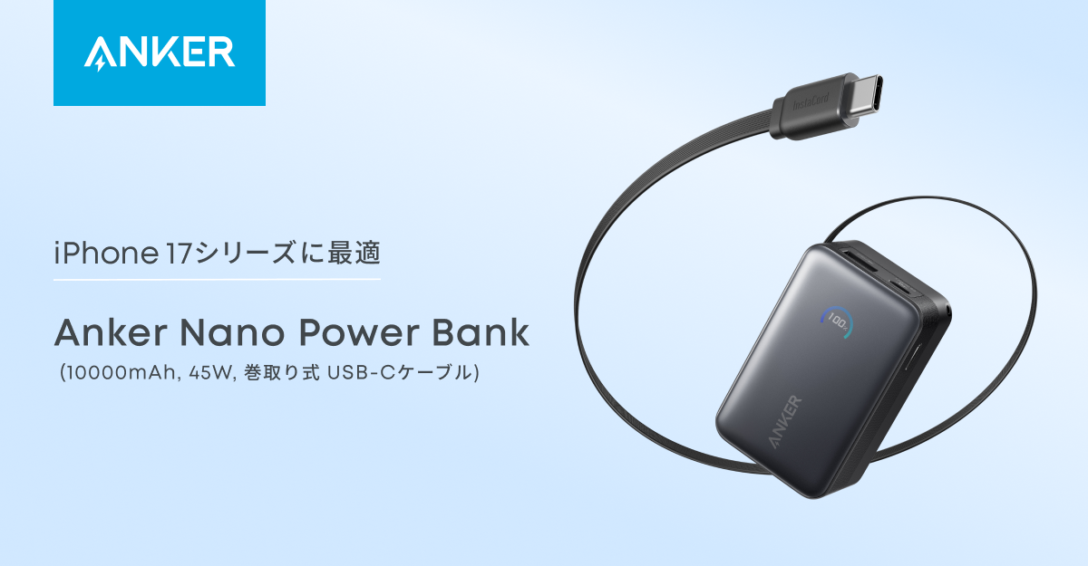 • Anker Nano Power Bank (10000mAh, 45W, 巻取り式 USB-Cケーブル)