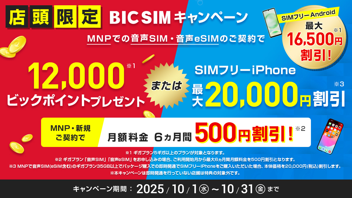 BIC SIMのギガプランで値下げとデータ増量、3月1日から