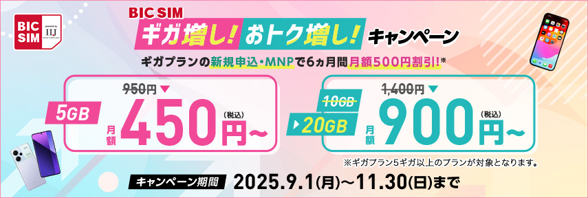 BIC SIMのギガプランで値下げとデータ増量、3月1日から
