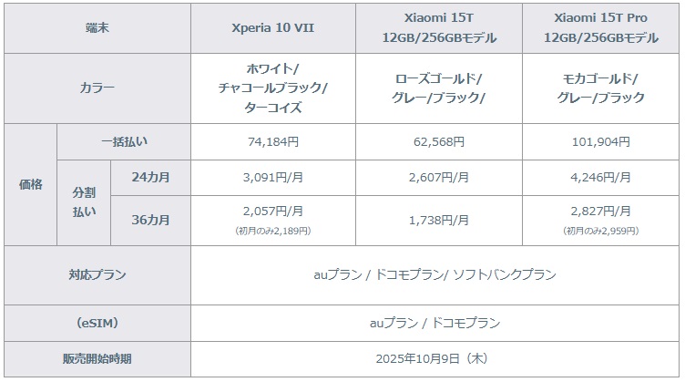 10月9日発売「Xperia 10 VII」、価格まとめ