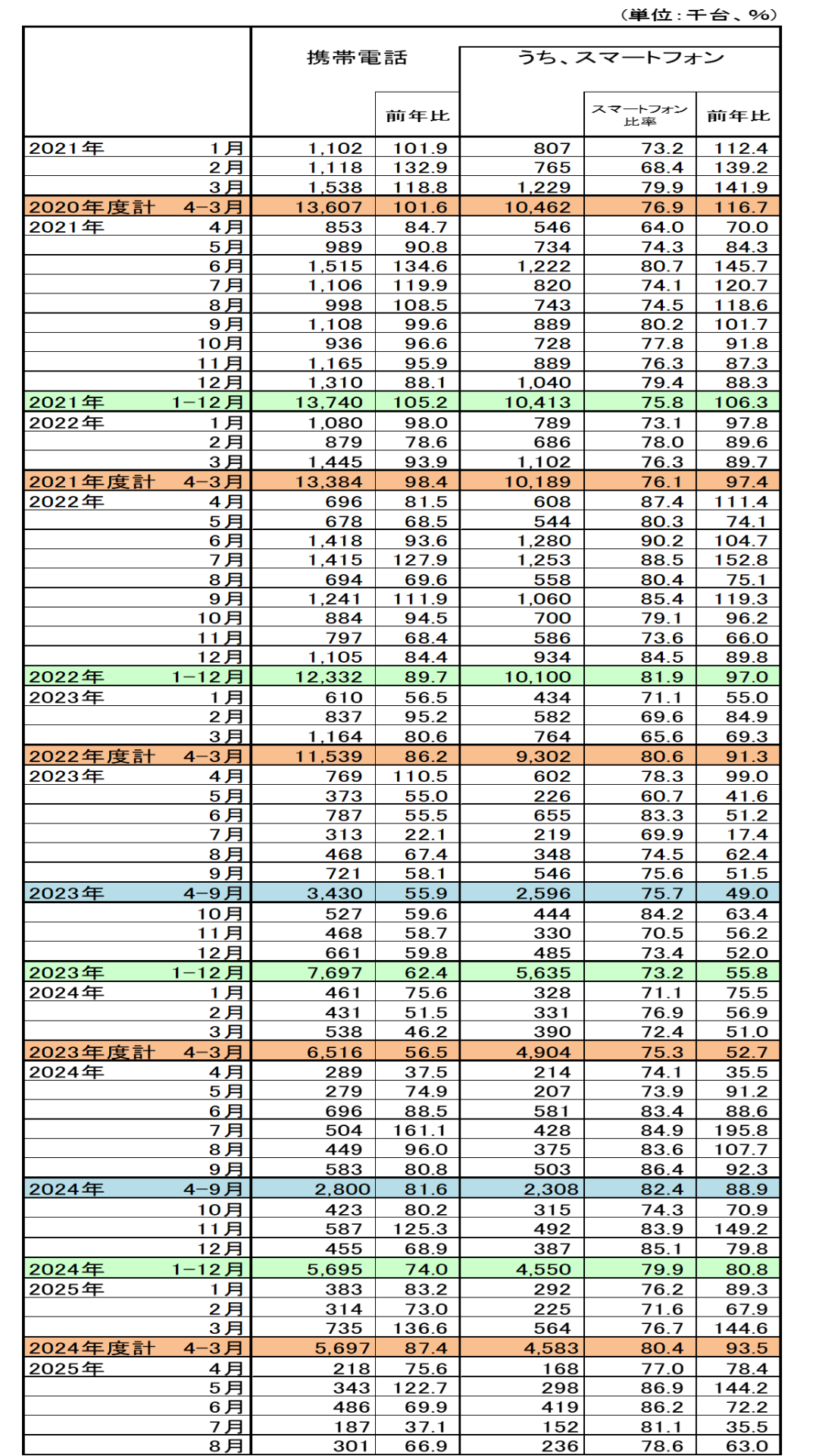 1月のスマホ出荷台数は21.9万台、前年比75%