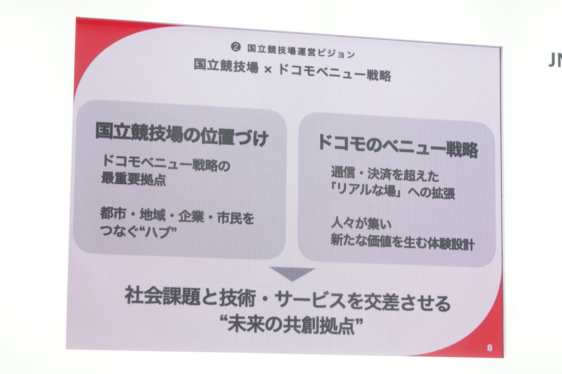 国立競技場が「MUFG スタジアム」に、運営参画のドコモは「通信・決済超えた未来の共創拠点」目指す(23/25)