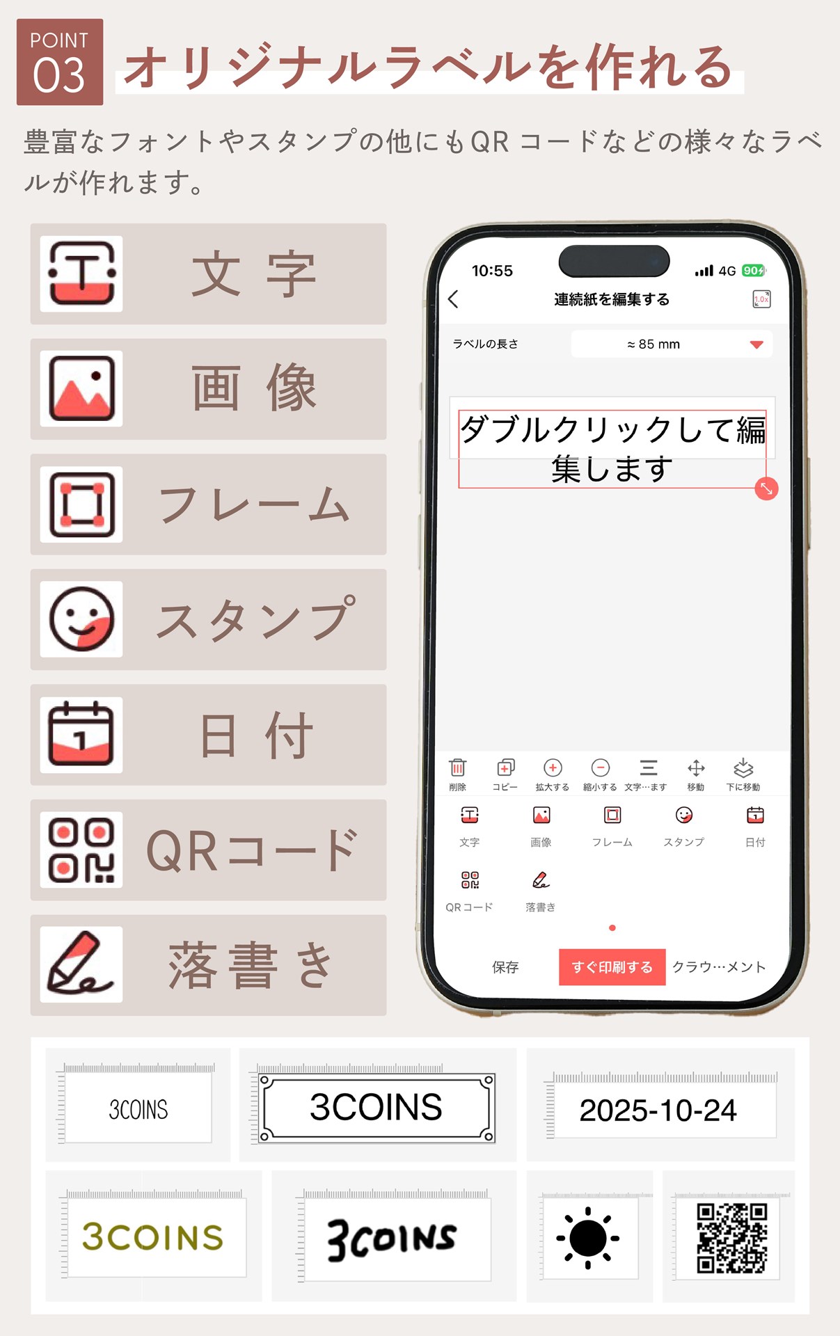 3COINS、スマホでオリジナルラベルを作れる「ラベルプリンター」発売(4/7)